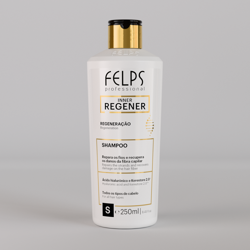 Felps szampon inner regener naprawczy 250ml - z kwasem hialuronowym, Kerestore 2.0 i kolagenem roślinnym wspomaga inteligentną regenerację wewnętrzną włosa, która oczyszcza, wypełnia i zapewnia większą gęstość włóknom, leczy uszkodzenia, regeneruje włókna i wzmacnia je. Przedłuża nawilżenie, zapobiega wysuszaniu, porowatości, uszkodzeniom i rozdwajaniu się końcówek spowodowanym procesami chemicznymi i ciepłem termicznym, zapewniając pełne, wyrównane, lśniące i zdrowe włosy.