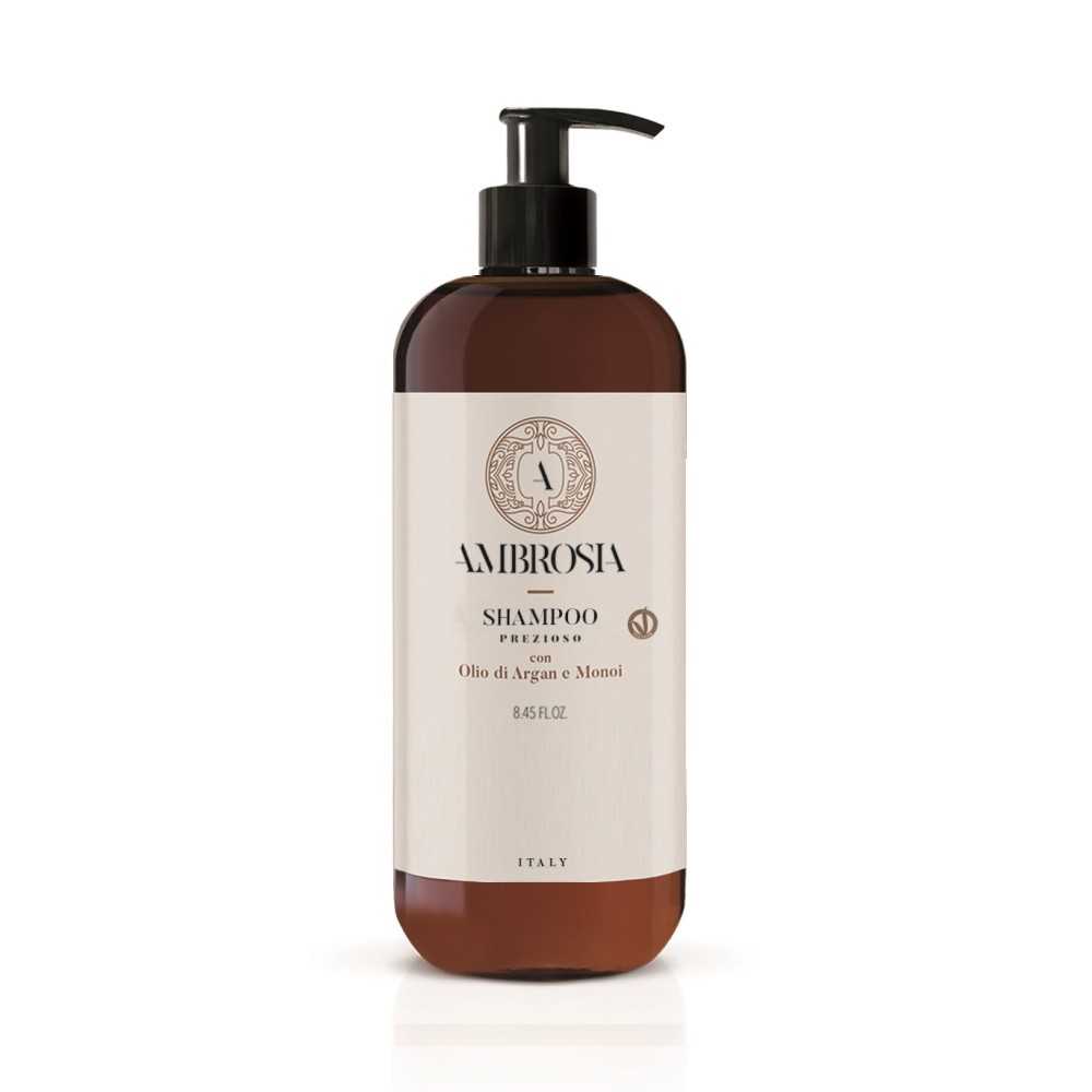 Sposób użycia: nałożyć na mokre włosy, delikatnie masować aż do uzyskania delikatnego mikro musu. Pozostawić na 2-3 minuty przed spłukaniem. Spłukać wodą. Następnie zalecane zastosowanie odżywki lub maski z serii Ambrosia Prezioso.